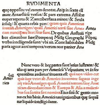 [551] "Amerigen quasi Americi terram, sive American, dicemdam cum et Europa et Asia á mulieribus sua sortita sint nomina" (Cosm: Introd., fol. 3-6 y 15-6), citado por Kretschmer, Entdeckung Amerikas, pág. 364. Vse. también Hughes. Le vicende del nome "America", pág. 17 y sig. Winsor, N. & C. H. of A. II, pág. 176 (notas). Harrisse, Cristophe Colomb, II, 97. Herrera, Dec. I, 182, I, y las referencias de la Tabla General (vol. IV). Markham, Vespucci Letters, pág. 68-109 (copia Las Casas, Hist.). Bourne, op. cit., pág. 98 y sig., etc., etc.