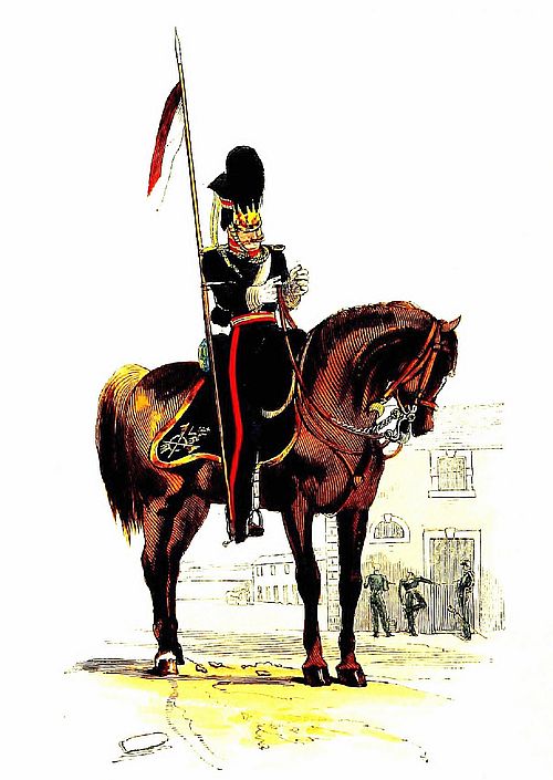 On the 28th December of this year, Colonel His Royal Highness The Prince George of Cambridge, was, by authority of Her Majesty, attached to the Twelfth Royal Lancers, and authorised to wear the uniform of the regiment. The Prince joined in February, 1840, and continued to do duty with the regiment for two years[7].