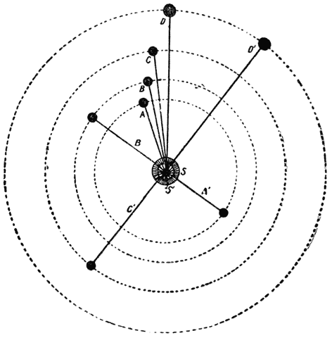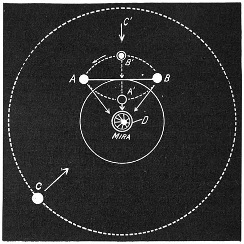 | Fig. 40. | A solar system which would explain the regular variability of the star Mira | 178 | ||||||
