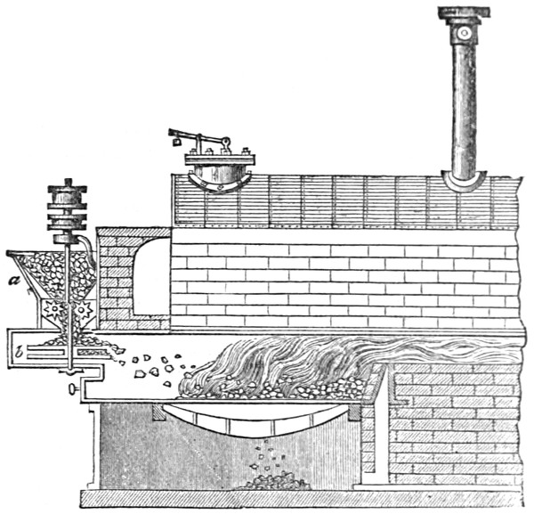 Unter den Einrichtungen, welche 3. eine verbesserte Zuführung des Brennmaterials bezwecken sollen, seien unter den zahllosen Vorschlägen einige der besseren und bewährteren angeführt.