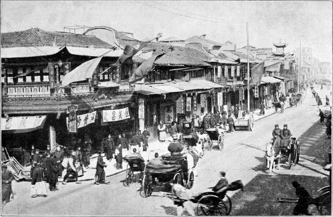 Wie mir ums Herz wurde, als ich mit Frau und Kind durch die Strassen der grossen Stadt zog, an den riesigen Steinmauern entlang schritt, die jeden Augenblick einzustürzen drohten, als ich nur ein Stückchen Himmel und keine Sonne sah, will ich nicht schildern. Mir war zu Mute, als ob ich durch die unterlassene Darbringung von Opfern meine Ahnen aufs Schwerste beleidigt hätte und jede Minute von ihrer Strafe ereilt werden könnte. Die Freude meines jungen A-tou war aber ohne Grenzen. Ueberall blieb er stehen. Alles fesselte ihn, über alles wollte er Auskunft haben.