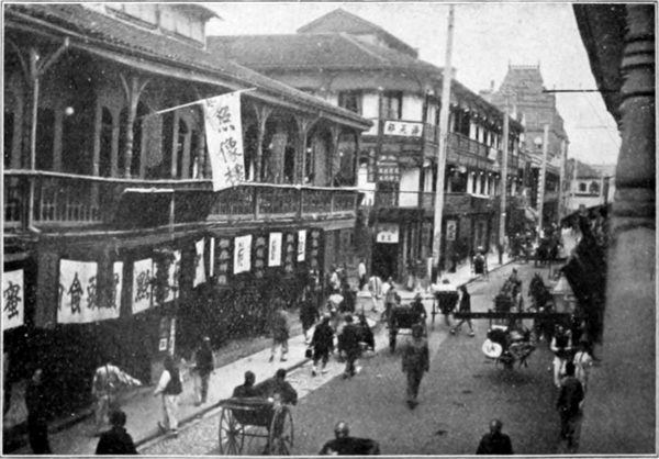 Das chinesische Neujahrsfest 1912 hat infolge der politischen Ereignisse, die gerade kurz vor dem Fest zu einem vorläufig befriedigenden Abschluss kamen, ein besonderes Gepräge erhalten. Wer während der Festtage durch die Hauptstrassen der Niederlassung gewandert ist, dem fielen wohl zwei Dinge zuerst in die Augen. Einmal waren es die wenig Schönheitsgefühl verratenden grellfarbigen Flaggen der Republik, mit denen die Häuserfronten geschmückt waren, und ferner die vielen feld- und hechtgrauen Uniformen in dem wogenden Strassengetriebe. Diese beiden Aeusserlichkeiten waren gewissermassen der Grundton, der den vielen Einzelwesen, die in den Strassen auf- und abwogten oder sich an belebten Strassenecken als gaffende Zuschauer zu Massen stauten, eine besondere Farbe lieh.