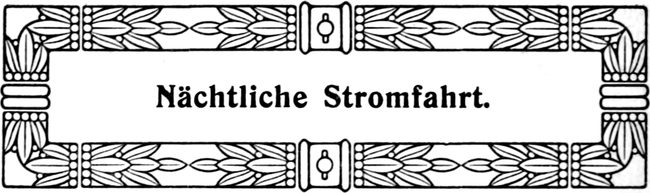 Es ist eine Nacht, so recht angetan zum Träumen. Leise schaukelt das Boot flussab. Man hört kaum das regelmässige Wirken des Ruders. Jetzt kommt unser Fahrtgenosse, setzt sich in Bereitschaftsstellung, und er entlockt der Ziehharmonika frohe— 125 — Weisen. Unter ihren Klängen geht es dem Port zu. Im Vorübergehen wird dem deutschen Kreuzer ein Ständchen dargebracht. „Holdrio, jetzt gehts zur Heimat“ wiegt die Mannschaften in den Schlaf. Mehr als ein Kamerad wird seinen Nachbar angestossen und mit schlafzwinkernden Augen gefragt haben: „Wat spüllt Der? Zur Heimat? Also zu Muttern“. Und die Melodie wird noch Manchem in den Ohren gesummt haben, als beim ersten Hahnenschrei das Kommando ertönte: „Hängmatten zurr!“