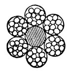 The interior of this cable consisted of a 4 mm. copper wire well insulated with paraffined cotton, and around this, parallel to its axis, lay 6 cables or cords, each consisting of 12 wires, also insulated with paraffined cotton (Fig. 21). The wire of 4 mm. formed the inductor through which the primary current was passed. The six cables, each of twelve strands, formed the induced portion of the apparatus, and the ends were connected to a commutator, so that they could be used either in parallel or series.
