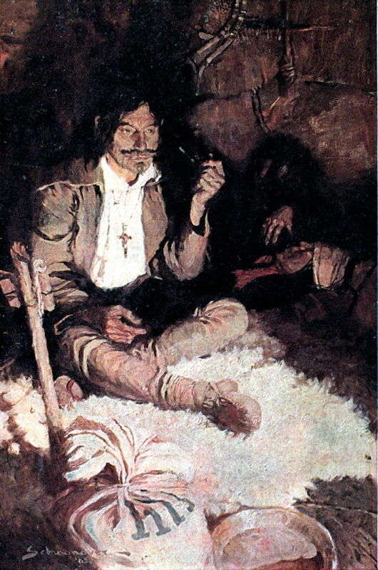 He yanked the shirt from Etienne’s body, tore it into strips, with which he tied the unconscious man firmly; then he picked up his cap, filled it with water at the river, and dashed it over the renegade; again and again he did this till Annaotaha stirred slightly.