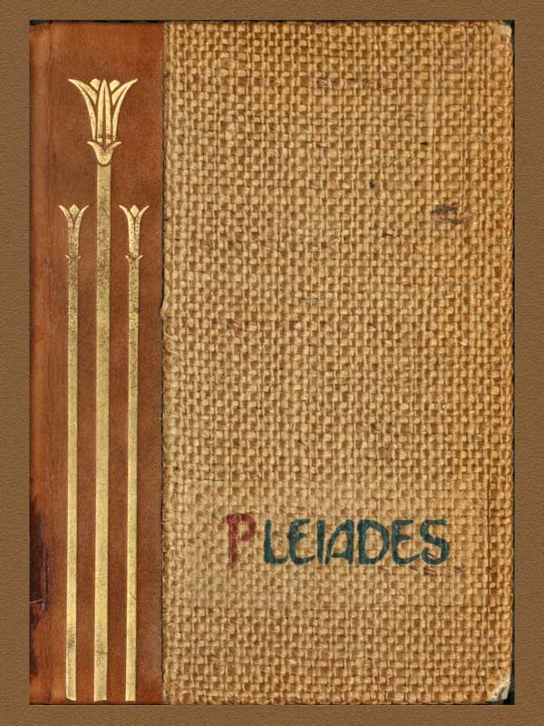 Original spelling and grammar have been generally retained, with some exceptions noted below. The transcriber produced the cover image by slightly altering the original, and hereby assigns it to the public domain. Illustrations, other than drop-caps, have been moved from within paragraphs of text to nearby locations between paragraphs. For this purpose, I have treated stanzas of poetry like paragraphs of text. Original page images are available from archive.org—search for “pleiadesclubyear00plei”.
