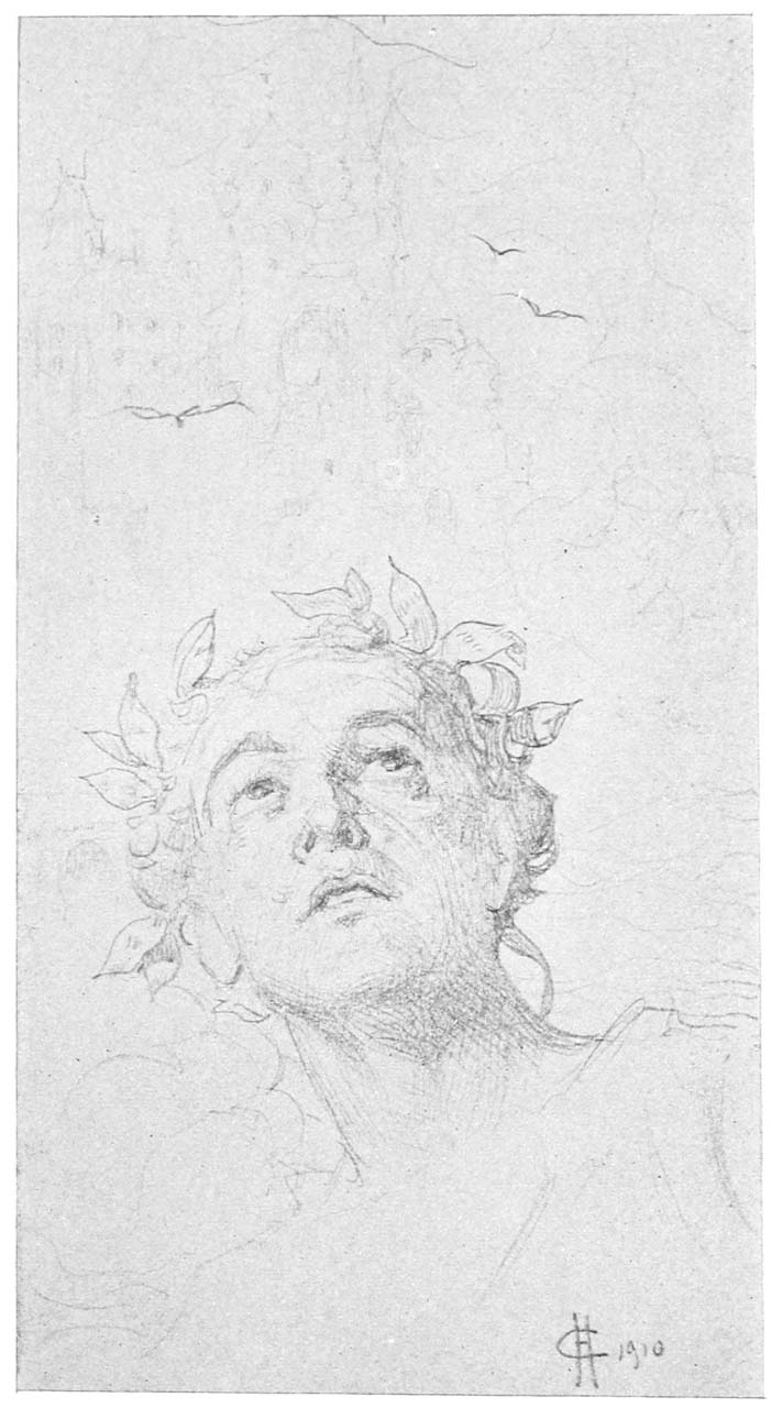 This takes in all the schools, as well as the fiery, untamed spirits who would break away from schools altogether. Art is always the same; temperaments differ and become warped. The academician’s temperamental glass is ruled off into formal geometrical patterns, and he sees nature as a kind of problem in perspective. The rabid “impressionist” looks within himself, and away from nature, and “sees things” which don’t exist for anyone else. The true artist gazes straight out upon nature, and forgets himself, and art comes to him “as easily as lying.”