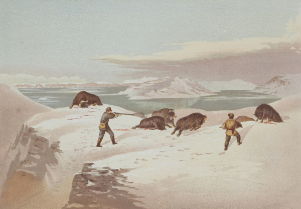 The discovery that there was some game in the country was a very cheering one. If it was not a land flowing with milk and honey, it was at any rate not so bad as it might be, and we went back to our sledging preparations with a hope that we should fall in with either the wolves or the oxen during our travels.