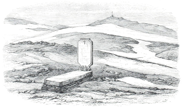 It was while all were thus actively employed that sickness—the one sickness of the Arctic regions—appeared amongst us. No one with medical experience of the disease can read the sledge journals of former expeditions without recognising numerous indications of scurvy. Our parties, more than five hundred miles north of where Franklin was lost, and in an unexpectedly colder and more lifeless climate, had no greater safeguards than their predecessors. Accordingly, each sledge-crew that returned to the ship showed fresh examples of the exhaustion, swollen and sprained ankles, stiff knees, and bruised and painful legs, only too familiar to Arctic travellers. Petersen, already maimed by frost-bite, was its first victim. He died on 14th May, and on the 19th the few remaining on board carried him to his grave. A spot on the top of a small hill, half-way between the beach and the beacon on Cairn Hill, was chosen, because a long heavy slab, suitable for a tombstone, lay there. The ground was frozen as hard as rock, and it took three days’ hard work with pick and gunpowder to dig a grave three feet deep. The slab, [64] afterwards rough-hewn by his messmates, and an oaken tablet covered with brass, marks where he lies.