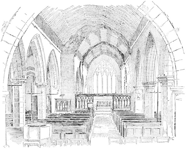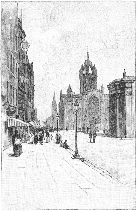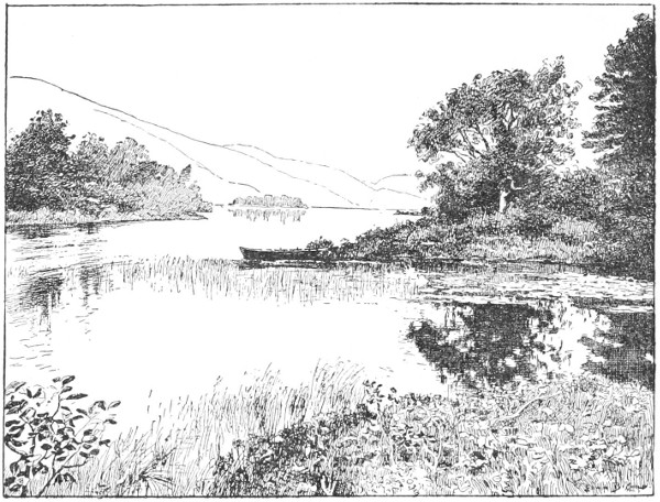In former days the traveller to Stirling commonly went by the way of Linlithgow, which is the place where Mary Stuart was born, and he was all the more prompted to think of that enchanting woman because[300] he usually caught a glimpse of the ruins of Niddry Castle, one of the houses of her faithful Lord Seton, at which she rested, on the romantic and memorable occasion of her flight from Loch Leven. Now, since the Forth bridge has been opened, the most direct route to Stirling is by Dunfermline. And this is a gain, for Dunfermline is one of the most interesting places in Scotland. That Malcolm of whom we catch a glimpse when we see a representation of Shakespeare's[301] tragedy of Macbeth had a royal castle there nine hundred years ago, of which a fragment still remains; and on a slope of the coast, a few miles west from Dunfermline, the vigilant antiquarian has fixed the sight of Macduff's castle, where Lady Macduff and her children were slaughtered by the tyrant. Behind the ancient church at Dunfermline, the church of the Holy Trinity,—devastated at the Reformation, but since restored,—you may see the tomb of Malcolm and of Margaret, his queen,—an angel among women when she lived, and worthy to be remembered now as the saint that her church has made her. The body of Margaret, who died at Edinburgh Castle, November 16, 1093, was secretly and hastily conveyed to Dunfermline, and there buried,—Edinburgh Castle, The Maiden Castle it was then called, being assailed by her husband's brother, Donald Bane. The remains of that noble and devoted woman, however, do not rest in that tomb, for long afterward, at the Reformation, they were taken away, and after various wanderings were enshrined at the church of St. Lawrence in the Escurial. I had often stood in the little chapel that this good queen founded in Edinburgh Castle,—a place which they desecrate now, by using it as a shop for the sale of pictures and memorial trinkets,—and I was soon to stand in the ruins of St. Oran's chapel, in far Iona, which also was built by her; and so it was with many reverent thoughts of an exalted soul and a beneficent life that I saw the great dark tower of Dunfermline church vanish in the distance. At Stirling, the rain, which had long been lowering, came down in floods, and after that for many hours there was genuine Scotch weather and a copious abundance of it. This[302] also is an experience, and, although that superb drive over the mountain from Aberfoyle to Loch Katrine was marred by the wet, I was well pleased to see the Trosach country in storm, which I had before seen in sunshine. It is a land of infinite variety, and lovely even in tempest. The majesty of the rocky heights; the bleak and barren loneliness of the treeless hills; the many thread-like waterfalls which, seen afar off, are like rivulets of silver frozen into stillness on the mountain-sides; the occasional apparition of precipitous peaks, over which presently are driven the white streamers of the mist,—all these are striking elements of a scene which blends into the perfection of grace the qualities of gentle beauty and wild romance. Ben Lomond in the west and Ben Venue and Ben Ledi in the north were indistinct, and so was Ben A'an in its nearer cloud; but a brisk wind had swept the mists from Loch Drunkie, and under a bleak sky the smooth surface of "lovely Loch Achray" shone like a liquid diamond. An occasional grouse rose from the ferns and swiftly winged its way to cover. A few cows, wet but indifferent, composed and contented, were now and then visible, grazing in that desert; while high upon the crags appeared many sure-footed sheep, the inevitable inhabitants of those solitudes. So onward, breathing the sweet air that here was perfumed by miles and miles of purple heather, I descended through the dense coppice of birch and pine that fringes Loch Katrine, and all in a moment came out upon the levels of the lake. It was a long sail down Loch Katrine, for a pilgrim drenched and chilled by the steady fall of a penetrating rain; but Ellen's isle and Fitz-James's silver[303][304] strand brought pleasant memories of one of the sweetest of stories, and all the lonesome waters seemed haunted with a ghostly pageant of the radiant standards of Roderick Dhu. To-night the mists are on the mountains, and upon this little pine-clad promontory of Stronachlacher the darkness comes down early and seems to close it in from all the world. The waters of Loch Katrine are black and gloomy, and no sound is heard but the rush of the rain and the sigh of the pines. It is a night for memory and for thought, and to them let it be devoted.