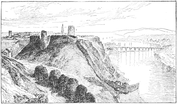 Berwick-upon-Tweed, September 8, 1890.—It had long been my wish to see something of royal Berwick, and our acquaintance has at length begun. This is a town of sombre gray houses capped with red roofs; of elaborate, old-fashioned, disused fortifications; of dismantled military walls; of noble stone bridges and stalwart piers; of breezy battlement walks, fine sea-views, spacious beaches, castellated remains, steep streets, broad squares, narrow, winding ways, many churches, quaint customs, and ancient memories. The present, indeed, has marred the past in this old town, dissipating the element of romance and putting no adequate substitute in its place. Yet the element of romance is here, for such observers as can look on Berwick through the eyes of the imagination; and even those who can imagine nothing must at least perceive that its aspect is regal. Viewed, as I had often viewed it, from the great Border bridge between England and[315] Scotland, it rises on its graceful promontory,—bathed in sunshine and darkly bright amid the sparkling silver of the sea,—a veritable ocean queen. To-day I have walked upon its walls, threaded its principal streets, crossed its ancient bridge, explored its suburbs, entered its municipal hall, visited its parish church, and taken long drives through the country that encircles it; and now at midnight, sitting in a lonely chamber of the King's Arms and musing upon the past, I hear not simply the roll of a carriage wheel or the footfall of a late traveller dying away in the distance, but the music with which warriors proclaimed their victories and kings and queens kept festival and state. This has been a pensive day, for in its course I have said farewell to many lovely and beloved scenes. Edinburgh was never more beautiful than when she faded in the yellow mist of this autumnal morning. On Preston battlefield the golden harvest stood in sheaves, and the meadows glimmered green in the soft sunshine, while over them the white clouds drifted and the peaceful rooks made wing in happy indolence and peace. Soon the ruined church of Seton came into view, with its singular stunted tower and its venerable gray walls couched deep in trees, and around it the cultivated, many-coloured fields and the breezy, emerald pastures stretching away to the verge of the sea. A glimpse, and it is gone. But one sweet picture no sooner vanishes than its place is filled with another. Yonder, on the hillside, is the manor-house, with stately battlement and tower, its antique aspect softened by great masses of clinging ivy. Here, nestled in the sunny valley, are the little stone cottages,[316] roofed with red tiles and bright with the adornment of arbutus and hollyhock. All around are harvest-fields and market-gardens,—the abundant dark green of potato-patches being gorgeously lit with the intermingled lustre of millions of wild-flowers, white and gold, over which drift many flights of doves. Sometimes upon the yellow level of the hayfields a sudden wave of brilliant poppies seems to break,—dashing itself into scarlet foam. Timid, startled sheep scurry[317] away into their pastures, as the swift train flashes by them. A woman standing at her cottage door looks at it with curious yet regardless gaze. Farms teeming with plenty are swiftly traversed, their many circular, cone-topped hayricks standing like towers of amber. Tall, smoking chimneys in the factory villages flit by and disappear. Everywhere are signs of industry and thrift, and everywhere also are denotements of the sentiment and taste that are spontaneous in the nature of this people. Tantallon lies in the near distance, and speeding toward ancient Dunbar I dream once more the dreams of boyhood, and can hear the trumpets, and see the pennons, and catch again the silver gleam of the spears of Marmion. Dunbar is left behind, and with it the sad memory of Mary Stuart, infatuated with barbaric Bothwell, and whirled away to shipwreck and ruin,—as so many great natures have been before and will be again,—upon the black reefs of human passion. The heedless train is skirting the hills of Lammermoor now, and speeding through plains of a fertile verdure that is brilliant and beautiful down to the margin of the ocean. Close by Cockburnspath is the long, lonely, melancholy beach that well may have been in Scott's remembrance when he fashioned that weird and tragic close of the most poetical and pathetic of his novels, while, near at hand, on its desolate headland, the grim ruin of Fast Castle,—which is deemed the original of his Wolf's Crag,—frowns darkly on the white breakers at its surge-beaten base. Edgar of Ravenswood is no longer an image of fiction, when you look upon that scene of gloomy grandeur and mystery. But do not look upon it too closely nor too long,—for[318] of all scenes that are conceived as distinctly weird it may truly be said that they are more impressive in the imagination than in the actual prospect. This coast is full of dark ravines, stretching seaward and thickly shrouded with trees, but in them now and then a glimpse is caught of a snugly sheltered house, overgrown with flowers, securely protected from every blast of storm. The rest is open land, which many dark stone walls partition, and many hawthorn hedges, and many little white roads, winding away toward the shore: for this is Scottish sea-side pageantry, and the sunlit ocean makes a silver setting for the jewelled landscape, all the way to Berwick.