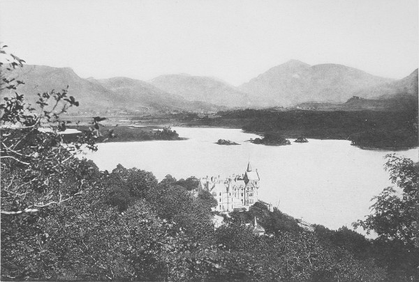 Oban, September 4, 1890.—Going westward from Stronachlacher, a drive of several delicious miles, through the country of Rob Roy, ends at Inversnaid and the shore of Loch Lomond. The rain had passed, but under a dusky, lowering sky the dense white mists, driven by a fresh morning wind, were drifting along the heath-clad hills, like a pageant of angels trailing robes of light. Loch Arklet and the little shieling where was born Helen, the wife of the Macgregor, were soon passed,—a peaceful region smiling in the vale; and presently, along the northern bank of the Arklet, whose copious, dark, and rapid waters, broken into foam upon their rocky bed, make music all the way, I descended that precipitous road to Loch Lomond which, through many a devious turning and sudden peril in the fragrant coppice, reaches safety at last, in one of the wildest of Highland glens. This drive is a chief delight of Highland travel, and it appears to be one that "the march of improvement,"—meaning the extension of railways,—can never abolish;[306][307] for, besides being solitary and beautiful, the way is difficult. You easily divine what a sanctuary that region must have been to the bandit chieftain, when no road traversed it save perhaps a sheep-track or a path for horses, and when it was darkly covered with the thick pines of the Caledonian forest. Scarce a living creature was anywhere visible. A few hardy sheep, indeed, were grazing on the mountain slopes; a few cattle were here and there couched among the tall ferns; and sometimes a sable company of rooks flitted by, cawing drearily overhead. Once I saw the slow-stepping, black-faced, puissant Highland bull, with his menacing head and his dark air of suspended hostility and inevitable predominance. All the cataracts in those mountain glens were at the flood, because of the continuous heavy rains of an uncommonly wet season, and at Inversnaid the magnificent waterfall,—sister to Lodore and Aira Force,—came down in great floods of black and silver, and with a long resounding roar that seemed to shake the forest. Soon the welcome sun began to pierce the mists; patches of soft blue sky became visible through rifts in the gray; and a glorious rainbow, suddenly cast upon a mountain-side of opposite Inveruglas, spanned the whole glittering fairy realm with its great arch of incommunicable splendour. The place of Rob Roy's cavern was seen, as the boat glided down Loch Lomond,—a snug nest in the wooded crag,—and, after all too brief a sail upon those placid ebon waters, I mounted the coach that plies between Ardlui and Crianlarich. Not much time will now elapse before this coach is displaced,—for they are building a railroad through Glen Falloch, which, running southerly from Crianlarich, will skirt[308] the western shore of Loch Lomond and reach to Balloch and Helensburgh, and thus will make the railway communication complete, continuous, and direct between Glasgow and Oban. At intervals all along the glen were visible the railway embankments, the piles of "sleepers," the heaps of steel rails, the sheds of the builders, and the red flag of the dynamite blast. The new road will be a popular line of travel. No land "that the eye of heaven visits" is lovelier than this one. But it may perhaps be questioned whether the exquisite loveliness of the Scottish Highlands will not become vulgarised by over-easiness of accessibility. Sequestration is one of the elements of the beautiful, and numbers of people invariably make common everything[309] upon which they swarm. But nothing can debase the unconquerable majesty of those encircling mountains. I saw "the skyish head" of Ben More, at one angle, and of Ben Lui at another, and the lonely slopes of the Grampian hills; and over the surrounding pasture-land, for miles and miles of solitary waste, the thick, ripe heather burnished the earth with brown and purple bloom and filled the air with dewy fragrance.