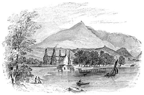 Having refreshed to your satisfaction in Mrs Tyson's best parlour, where the furniture of ancient oak bears such a polish as might tempt you to re-enact the story of Narcissus, you may proceed to examine the church yard, for here, again, the house of prayer and the house of refreshment are in juxta-position. In this little mountain burial-place, you will find, under a yew tree, a plain tombstone erected to the memory of a late incumbent—the Rev. Owen Lloyd, son of Mr Charles Lloyd, of Old Brathay, who was the early and life-long friend of Southey, Coleridge, and Wordsworth—a participator, I believe, in the much-ridiculed scheme of Pantisocrasy—an accomplished scholar, and an elegant, though little known, writer. You may find a very interesting sketch of his history and character in De Quincey’s papers on Lake Society, and to that I must refer you. On the humble tombstone of his excellent, but unhappy son, you may read the following epitaph, which, I need not tell you, is by “the aged poet, whose residence is the crowning honour of the district”: