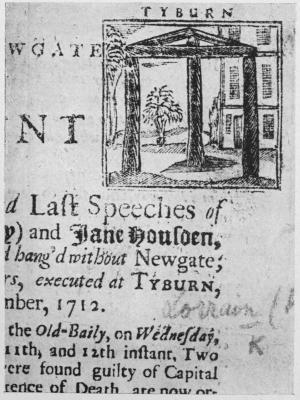 | From a broadsheet published by the Rev. Paul Lorrain, the Ordinary of Newgate, containing an account of an execution at Tyburn, on September 19, 1712. | |
