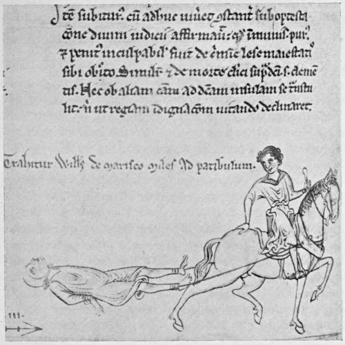 I desire to thank Mr. C. W. Moule, the Librarian of Corpus Christi College, and the College authorities, for permission, most courteously granted, to reproduce the drawing by Matthew Paris showing Sir William de Marisco being drawn to the gallows.