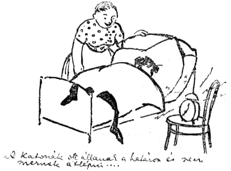 Na, mi az, ifiúr?… Mi?! Maga még az ágyban van? Hiszen nyolc óra van már, a nagyságos úr már el is ment a hivatalba.