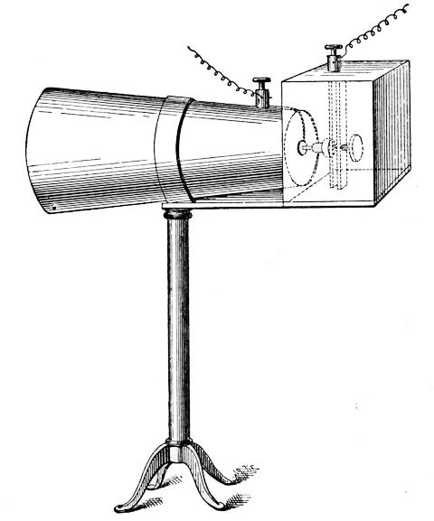 This form of instrument, which has been so frequently described in the Text-books of Physics, was constructed for sale first by Albert of Frankfort, later by Ladd of London, König of Paris, and Hauck of Vienna. Further details concerning it will be found in this book, in Reis’s “Prospectus,” and in other contemporary documents.