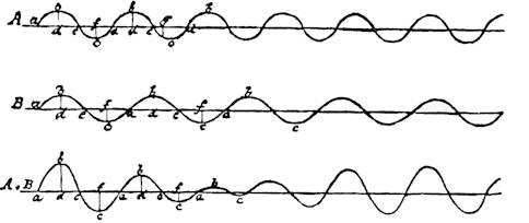 [16] [The three plates or tables with which Reis accompanied his Memoir, containing a variety of undulatory curves corresponding to various combinations of tones, both of musical concords and of dissonant sounds, are not reprinted in this book in their entirety. Table I. contained three sets, the first of which is reproduced by photo-lithography in reduced facsimile in Fig. 47, p. 173. It was also reproduced by W. von Legat in his Report from which Plate I. at end of this book is copied, Fig. 1 of that plate being the same as Fig. 1 of Reis’s Table I. Fig. 2 of Plate 1, was in like manner copied by Legat from the first figure of Reis’s Table II., and Fig. 3 of Plate I., which represents the curves of a non-harmonious combination is the same as Reis’s Table III., the only difference being that in Reis’s Table III. the irregular undulations of the resultant curve were emphasised by being labelled ‘Dissonanz.’]—S. P. T.