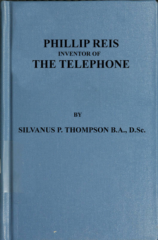 The author’s acknowledgments are due in an especial manner to Mr. Albert Stetson, A.M., of Cohasset, Massachusetts, who has given him much valuable assistance in the collection of information both in Germany and in this country, and who has also assisted in the translation of some[iv] of the contemporary documents to be found in the work. To the friends, acquaintances, and pupils of Philipp Reis, and especially to the surviving members of the family at Friedrichsdorf, who have most kindly furnished many details of information, the author would express his most cordial thanks. The testimony now adduced as to the aim of Philipp Reis’s invention, and the measure of success which he himself attained, is such, in the author’s opinion, and in the opinion, he trusts, of all right-thinking persons, to place beyond cavil the rightfulness of the claim which Reis himself put forward of being the inventor of the Telephone. Full and sufficient as that testimony is, much more remains as yet unpublished. The author has, for example, been permitted to examine a mass of evidence collected by the Dolbear Telephone Company, which entirely corroborates that which is here presented. It is, however, for certain reasons beyond the author’s control, deemed well at the present moment to withhold this testimony for a little while from publication. The appearance of this volume at the present time needs no apology from the author. He is conscious that all he can do will add little or nothing to the lustre with which the name of Philipp Reis will be handed down to posterity. When the Jubilee of Philipp Reis comes to be celebrated in 1884 (January 7th), the world will find out its indebtedness to the great man whose thoughts survive him.