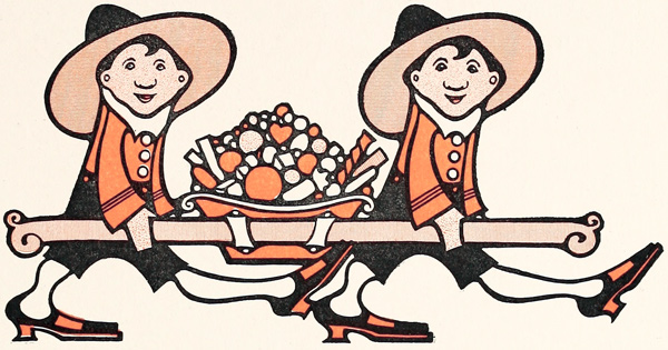Much to their surprise, upon again entering the Valley of Happiness, they found the Realm to be ruled not by Rolie Polie, but by King Hans the First, called by some King Hans the Happy, and by others Happy Hans. However, their surprise and wonder were soon dispelled by the Mayor, who told Mr. Poodle how, at the first meeting of the councillors following the departure of King Tommy and Queen Helen, it had been suggested that the name Rolie Polie, while being a fine one for a clown, really seemed too frivolous for a King, so by an act of Parliament it was changed to Hans the First. {165}
