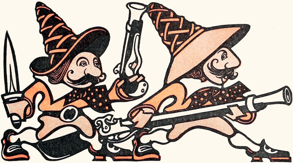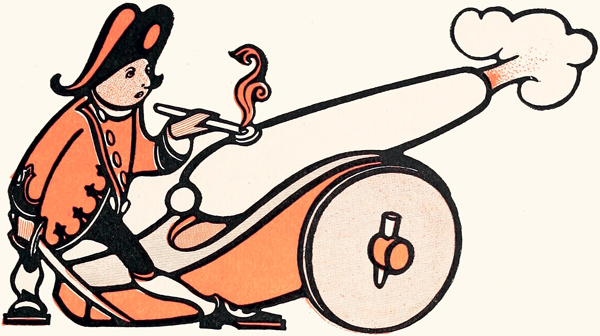 These were the last words spoken as the little company passed through the gates and the big cannon boomed {154} out a parting salute. The sun was now low in the sky, casting a golden glow along the path, and making blue shadows gather in the valley.