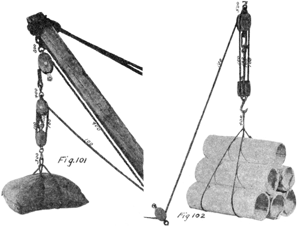 | Diam. of Rope in Inches | Steel | Iron | ||||