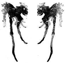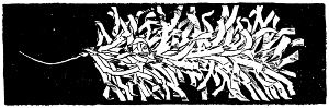 These little workers in wood are but babies, being the larvæ of the engraver beetle, which, deposited as eggs under the bark of a dead tree, turn into worm-like creatures and eat their way along the surface of the sap-wood, tracing the cabalistic designs in their progress. When fully developed the beetle is still a wee thing, the largest being not over a quarter of an inch in length. Some are brown in color and some black.