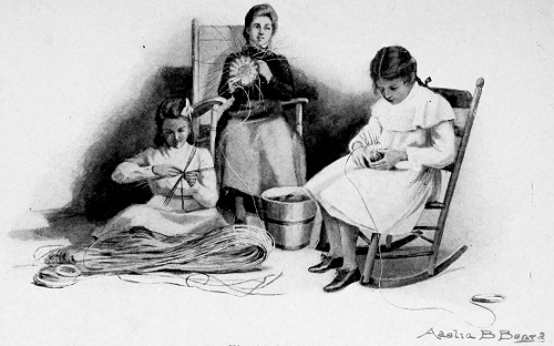 | Cone Hanging-basket, 58; Sweet-grass Mats, 59; Corn-husk Basket, 60; Lavender Sticks, 62; Braiding Palm-grasses and Corn-husks, 64. | ||