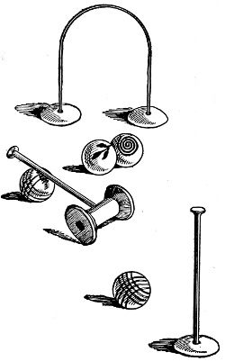 Marbles—Tops—Latest Things in Kites—Aerial Fish and Dragons—Hoops and Wheels—How to Make the Sucker—Up in the Air on Stilts—Bait, Live and Dead—Fishing—Aquatic Sports—Rigs of All Kinds for Small Boats—Shells and Canoes—Hints for Collectors—Honey-Bee Messengers—A “Zoo”—Choosing Up and “It”—Counting Out Rhymes—Swimming—Games of Tag—I Spy—Leap Frog—Various Sports for Hot Days—Tip Cat—Games of Ball—Mumbly Peg, Hop-Scotch, and Jack Stones—Hints for Bicyclists—Camping Out—Boy’s Ballista—“Tally-ho!” and Other Cries—Indian Games for Boys—Football—Golf, Hockey, and Shinny—Turtle Hunting—Skating—Stunning Muskrats and Fish—Snowball Battle and Snow Tag—Sleds.