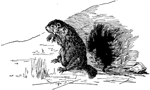 The woodchuck is a snub-nosed little animal, a trifle larger than a good-sized rabbit. Its tail is short and bushy and its hair long, coarse, and of a brownish color, ears low and inconspicuous, and eyes round and bright. At the approach 381of winter he retires to his nest, which is in a chamber at the farthest end of his longest tunnel, there to sleep or hibernate until spring. A popular legend has it that on the second day of February the ground-hog—he is always a ground-hog in this connection—is sure to be up and out to see how high the sun is and investigate the general progress of things.
