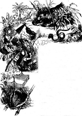 "Beauty and the Beast" makes another good story for acting rapidly in this way. It is very effective with a prettily dressed Beauty, a garden of paper roses, a terrible Beast, of the bear kind, muffled in fur cloak—or, better still, tiger-skin or goat-skin hearth-rug—and a quick change in throwing off the Bear disguise, and discovering the Prince.