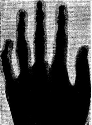 Probably what most aroused the interest of the public was the fact that when a structure, like the hand, was interposed in the path of these rays, the bones would cast a deep shadow, while the shadow cast by the flesh was very faint. It was thus possible to photograph the bones of the living body, and, of course, to show the presence of foreign substances or abnormal growths.