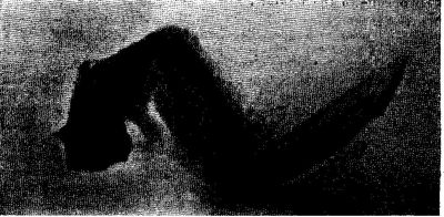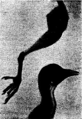Fig. 4 shows the wing of a pigeon, which is interesting, because while the outline of the flesh is distinctly marked the feathers have practically disappeared. The bones are not only clear, however, but the thinner parts are lighter than the thicker. Fig. 5 shows the leg and head of the pigeon. Around the head it is just possible to make out the outline of the feathers, the flesh is clearly marked, and all the bones of the neck are visible. In like manner the leg is interesting.