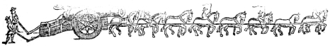 3 By the year 1300 the size and utility of ships had made considerable advance. Two masts were given them, each supported by a few shrouds and carrying a single large square sail; neither masts nor sails were yet subdivided, but the sails could be enlarged by having one or more “bonnets” laced to their lower part. Of the two masts the taller, the foremast, raked considerably over the bows, and both were surmounted by tops, with flagstaff and streamers. A central rudder appeared in this century, in place of the paddle fixed to the quarter, and a rudimentary bowsprit. The largest cogs, as they were now called, were of 250 tons burthen. When hired of merchants for war service, they were converted by the addition of fore-, aft-, and top-castles, built high so as to overtop, if possible, the enemy. The war vessels were at this time lavishly decorated; the sails were silk, dyed red or embroidered with armorial designs, the tops and stages were aflame with banners and pennons, the masts and yards were gilt. Large sums of money were spent by the knights in beautifying their ships.