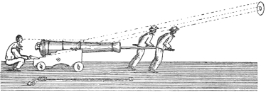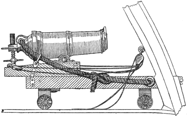 In the same work are instructions as to firing in a wind, when the train of powder might be blown from the vent before the linstock could be applied. The gunner was to form a clay rampart, a sort of tinker’s dam, on the metal of the piece on the windward side of the touch-hole.