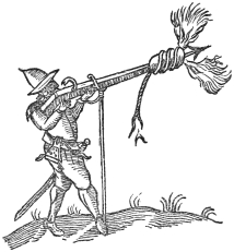 96 In the margin of the copy of The Art of Gunnery, Thos. Smith, A.D. 1600, in the library of the R.U.S.I. in Whitehall, is the following note, written in legible seventeenth-century script: “Some make a device to discharge at a distance by a long string, fixed to a device like a cock for a gun with a flint or like a musket cock with a match.”