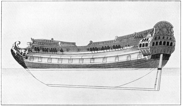 And now, before tracing its evolution through the seventeenth and eighteenth centuries, let us glance at the warship as it existed at the end of the Elizabethan era, and note its chief constructive features.