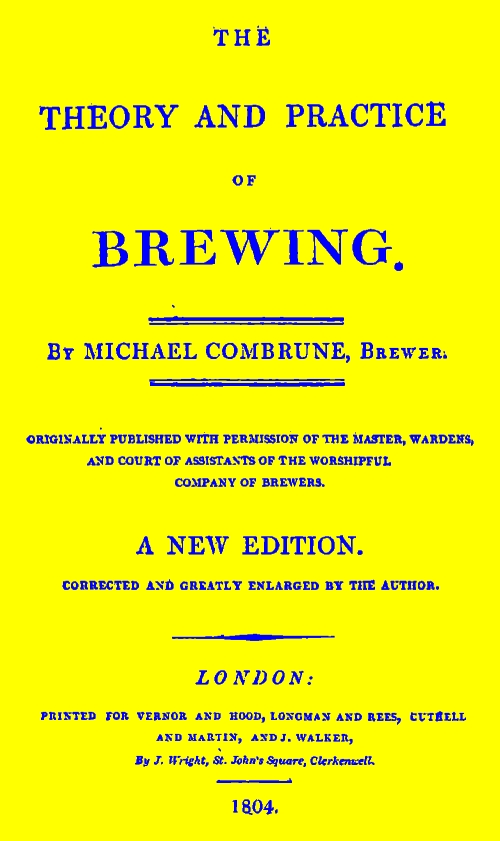 This being the first attempt, that has been made, to reduce this art to rules and principles, the Author hopes he has a just claim to the indulgence of the public, for any errors he unwillingly may have adopted; far from believing that there is no room left for future improvements, he recommends it to those, who, blessed with superior talents and more leisure than himself, may be inclined to try their skill in the same field, to watch closely the steps of Nature; after the strictest enquiry made, it will be found, the success of brewing beers and ales wholly depends on a true imitation of the wines she forms.