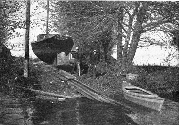 “Well, none of you can be anything for a good while yet. Come and look at the boat.” All four started toward the shop. “I tell you what, you can all be ship-carpenters, shipwrights, riggers, fitters, caulkers, and generally hard hustlers for a couple of months before we graduate to our high positions,” and Ransom led on to their “Argo.”
