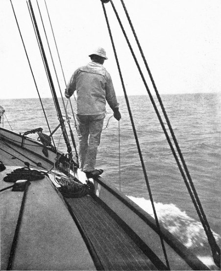With muscles tense, ready to spring away, Kenneth still stood at his post, the tiller in one hand the other clasping the cockpit rail, to keep from sliding off into the waves.