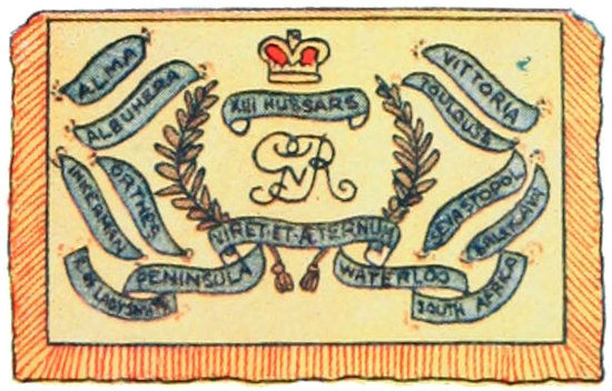 “During the winter the standards, so much damaged in the battle as to be unfit for use, were replaced by new ones from England, and each cornet was presented with the one he had carried, as a testimony to his good conduct. That presented to Cornet Richardson is still carefully preserved by his descendant and representative.