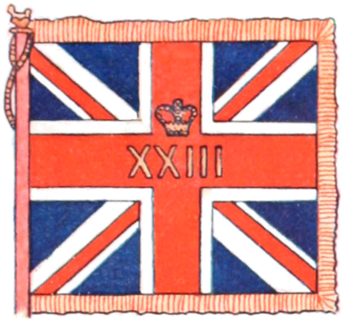 23. The Royal Canadian Regiment is the only regular unit in the Canadian Forces. It was first raised in December, 1883, for the purpose of instructing the Canadian Militia, and was called the Infantry School Corps. Since then it has been known as the Royal Regiment of Canadian Infantry, then the Royal Canadian Regiment of Infantry, and later by its present title. In 1894 H.M. Queen Victoria gave her Imperial Cypher V.R.I. as a badge. The Regiment was increased during the South African War by the raising of a 2nd and 3rd Battalion; these were afterwards disbanded. In 1885 the Regiment took part in the suppression of the North West Rebellion under General Middleton at Batoche and Cut-Knife Creek. In 1896 it formed part of the Expedition sent up to police the New Yukon District, where it remained for two years. In 1899–1900, the 2nd Battalion fought in South Africa with the 19th Brigade, doing particularly good service at Paardeburg. In 1905 the establishment was increased, when the Imperial Troops handed over the garrisoning of the fortresses at Halifax and elsewhere to Canadian Troops. In 1914, on the outbreak of war, the Battalion relieved the 2nd Bn. Lincolnshire Regiment at Bermuda, where it remained for eleven months. It landed in France in November, 1915, and took part in the battle of Ypres of June, 1916, Somme, September, 1916, and Vimy, 1917. It particularly distinguished itself on the Somme and Vimy. H.R.H. The Duke of Connaught is Colonel of the Regiment. In 1901, H.R.H. the Duke of Cornwall and York (now H.M. King George V.) presented Colours to the Regiment at Toronto. In 1904, H.E. Lord Minto, Governor-General of Canada, presented at Ottawa a special Banner given by H.M. King Edward VII. for service in South Africa.