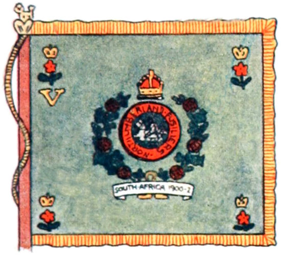 Ever since the time when the Romans went into battle, inspired by the vexillum or labarum, military flags or colours have commanded a respect bordering almost on the sacred. Our own history is crowded with incidents which go to prove this contention. Who is there, for instance, who has not heard of the gallant deeds of Melvill and Coghill, two heroes who lost their lives in an endeavour to preserve the Queen’s colour after the disastrous Zulu encounter at Isandlwana? Or let us take the case of Lieutenant Anstruther, a youngster of eighteen, in the Welsh Fusiliers. In defending the colour he carried up the treacherous heights of the Alma, a shot laid him low, and eager hands snatched up the 2emblem without a moment’s hesitation lest it should fall into the possession of the enemy. No one thought of the danger which might overtake them whilst guarding the cherished but conspicuous banner; all were resolved to perish rather than it should be wrested from their grasp. And, let it be said, five men won the Victoria Cross that day at the Alma for their gallant defence of the colours. At the battle of Albuhera, in 1811, a colour of the 3rd Buffs was carried by Ensign Thomas. The French attacked in great force, and, surrounding Thomas, called upon him to give up the silken banner. Thomas’s answer was discourteous, but to the point; a moment later he lay dead, and the French bore away the flag with triumph. To the credit of the Buffs, we must add that the emblem was back in their possession before nightfall. These are just a few cases in which men have been ready, and even eager, to make the great sacrifice rather than lose their colours. They could be readily multiplied a hundredfold.