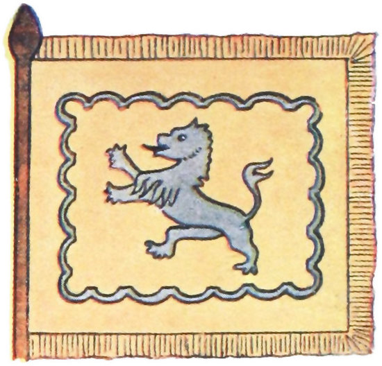 In the period 1633-1680, the first five infantry regiments, as we know them to-day, were established, and this may be taken as a convenient point from which to begin a study of the standards and colours of our Army. Before this time the military forces of England and Scotland went into battle with a full array of waving emblems, decorated with rampant lions, powdered leopards, spread eagles, and other gaudily-painted devices, but these were usually the symbols of the knights and patrons who raised the forces. Such flags possessed much heraldic or archæological interest, but few claims on the student of military lore, and may be thus set aside with the reminder that, if knowledge of them is required, it may be gained from such sources as the roll of Karlaverok.