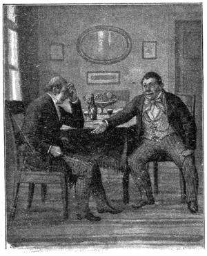 «Nei, hør nu, min gode herr Shelby,» sa han og tog sig en sup af vinglasset, «den handel gaar jeg aldrig ind paa.»