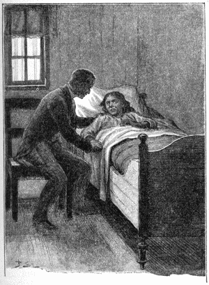 I to dage havde Tom ligget i en døs; han havde ikke nogen smerter; for hans nerver var saa ilde medfarne at han ikke kunde føle. En del af folkene havde om natten listet sig ind til ham med vand og vaade kluter. Det blev fældt mange taarer ved hans leie, og mange var det som tilhvisked ham sin tak og velsignelse for de mange kjærlighedsgjerninger han havde øvet[360] mellem dem. Selv Kassy havde været ved hans leie; hun havde, den kvelden han blev saa mishandlet, listet sig ned fra sit skjul, stillet sig paa lur et sted hvor hun havde hørt de to slaverne hviske sammen om hans ulykkelige skjæbne. Uden at bry sig om den fare hun udsatte sig for, om hun blev set, havde hun listet sig ned til ham og graatende takket ham for det han havde lidt for hendes og Emmelines skyld.
