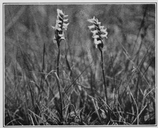 Again, it is easy to trace the relationship existing between plant form and soil conditions in the bogland flora; and these relations, unexpectedly enough, turn out to be analogous to those obtaining in the case of the salt-marsh. The sodden peat, sour and badly aerated, and poor in mineral salts, is poor also in the bacteria which feed upon and destroy dead vegetable matter, with the consequence that acid humus compounds collect in the half-decayed vegetable mass; water charged with these substances is as unsuitable for plants as is the water of the salt-marsh. In spite of the wetness of the peat, water is in this case also a desideratum; and the moorland plants, like{42} those of the sea fringe, possess special adaptations for economizing it. This usually takes prominently the form of a reduction of leaf-surface. The dominant plants, such as the Ling (Calluna vulgaris) and Purple Heather (Erica cinerea), have minute leaves with reflexed edges and special structure to protect the stomata. The grasses and sedges which abound have similar characteristics; the whole vegetation tends to be small-leaved and long-rooted. A few of the plants, such as the Eyebright (Euphrasia), eke out the scanty food-supply by a semi-parisitism, robbing their neighbours of portions of their hardly-won sustenance; one or two others, such as the Bladderwort (Utricularia), which floats in the bog-pools, and the Sundew (Drosera), which fringes their edges, entrap insects and digest their juices, helping out their scanty rations with an animal diet. On the moors the peculiar soil conditions determine definitely the type of vegetation, which, over large areas, is as uniform and monotonous as that of the salt-marsh.