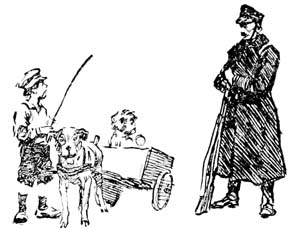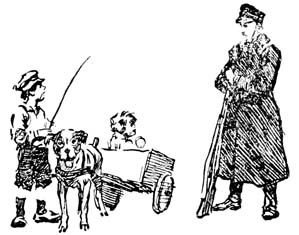 Old Luppe was, as you see, a very wise and experienced dog. He knew all the roads like a book and most of the streets of Brussels. He knew how to bring his cart safely across crowded thoroughfares without guidance, and to stop without instructions before the houses of Mère Marie’s customers in the city. Also he knew how to pull his load with the least possible expenditure of strength and wind, and to lie down and rest in his harness whenever he stopped for a minute.