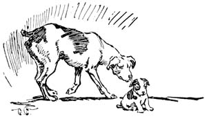 All these things he would one day teach to Pierrot, but meanwhile the puppy’s education was chiefly in the fundamentals. When Luppe was away on his business Pierrot would romp and play for hours with the children, and as his first teeth dropped[Pg 16] out and his second set came, white and strong, he learned just how hard it is fitting to bite a soft hand or plump ankle in play or in love. Sometimes he would follow Père Jean and Gran’père about the farm or dairy, and they taught him to come at a call and to lie down and wait until he was wanted. This was a very hard lesson to master, you may believe. Also it was hard to learn that Sunday shoes are not meant to be chewed like a broth bone.