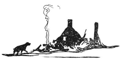 Pierrot stopped in a panic of bewilderment. The tile-roofed house was gone and only blackened timbers remained. He sniffed about among the ruins for a time, greatly troubled, and then circled around toward the outbuildings. They, too, were gone, but nearby was a little shack that he did not remember.